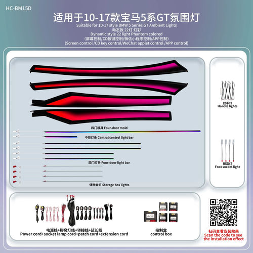 • A80 BMW 5 Series GT Ambient Lighting Kit | 22-LED Dynamic Phantom RGB